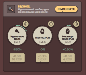 - Кузнец — влияет на крафт рун и лопат