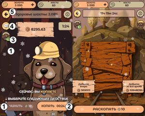 - Каждую минуту выбираете: чинить (1) шахту или копать (2)