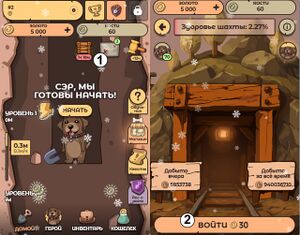 На главном экране нажмите кнопку Шахта (1), затем выберите Войти (2).